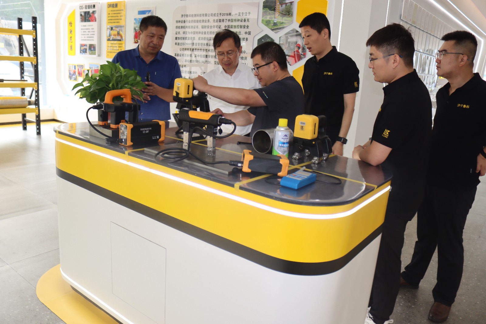 2024年7月18日江蘇省特種設備安全監督檢驗研究院徐州分院領導一行蒞臨濟寧魯科參觀指導,先后參觀了我公司的展廳、綜合辦公樓、研發生產中心,詳細了解了我公司的便攜式磁粉探傷儀、ACFM交流電磁場檢測儀、檢測爬行機器人等產品的研發、生產過程,對我公司表示高度認可,同時對公司產品表現了濃厚的興趣。