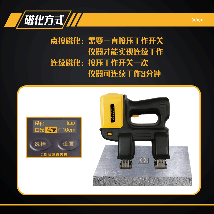 1、LKMT-E3L一體式旋轉(zhuǎn)磁場(chǎng)管道磁粉探傷儀,探頭與鋰電池一體式設(shè)計(jì),無(wú)需使用線鏈接。