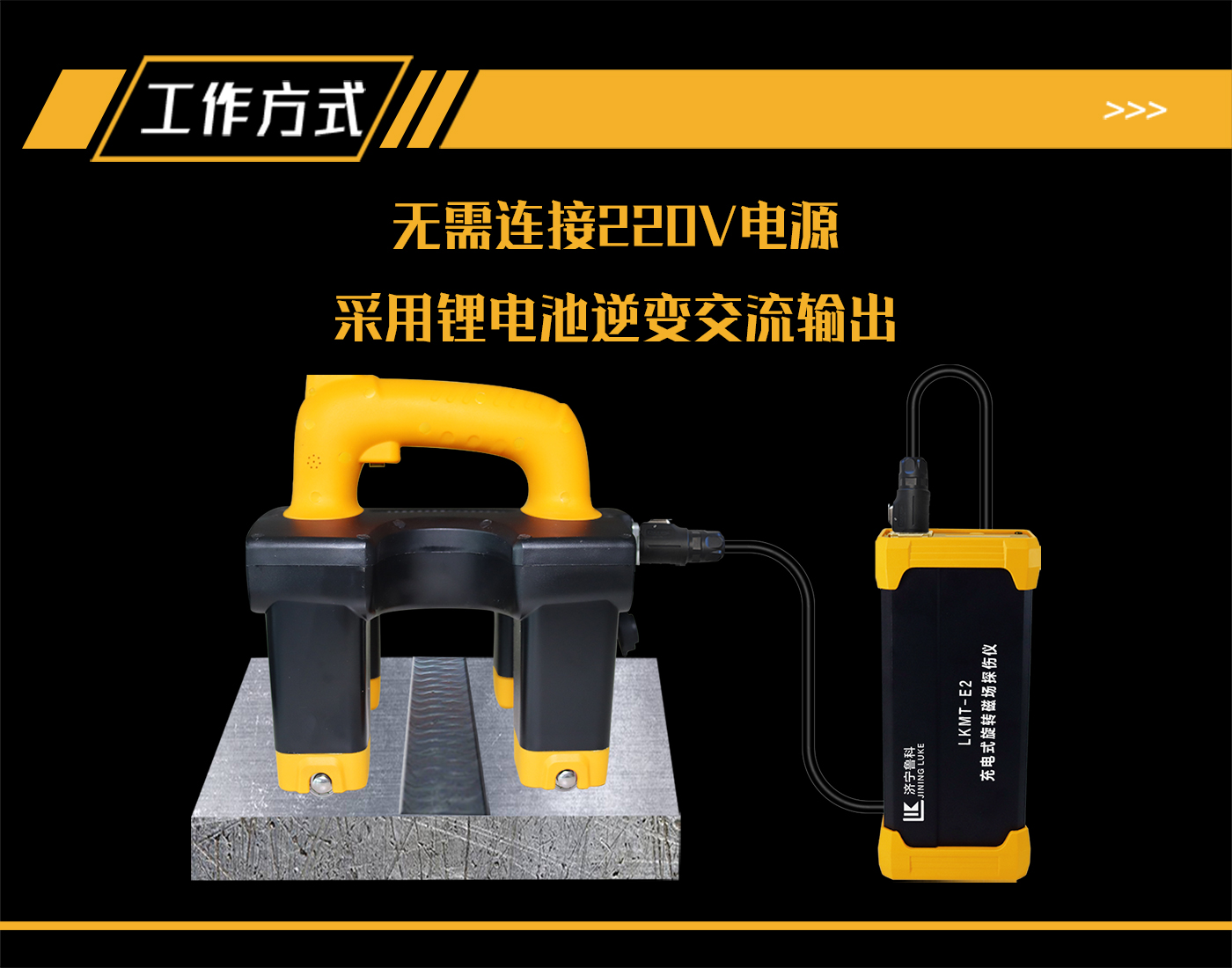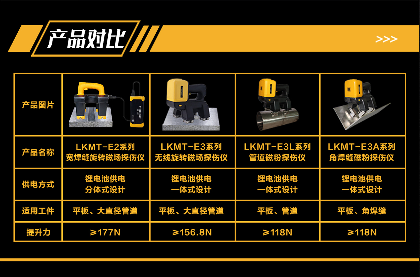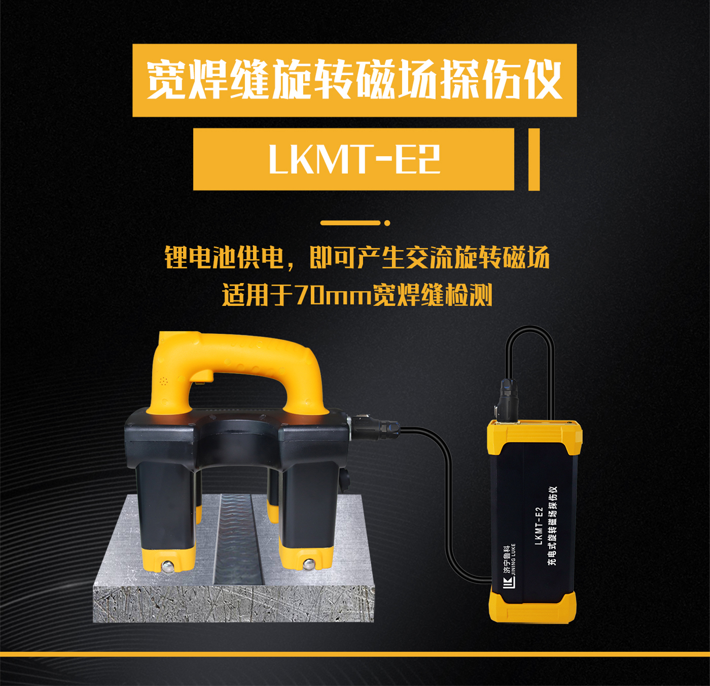1、LKMT-E2寬焊縫旋轉(zhuǎn)磁場(chǎng)探傷儀,采用鋰電池電源供電,無需外接110V或220V電源即可產(chǎn)生交流旋轉(zhuǎn)磁場(chǎng)進(jìn)行探傷;