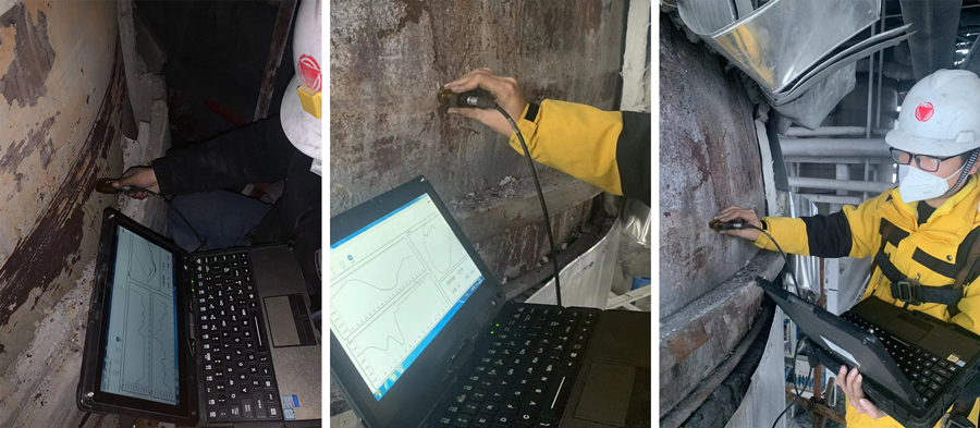 圖9 容器焊縫檢測現場